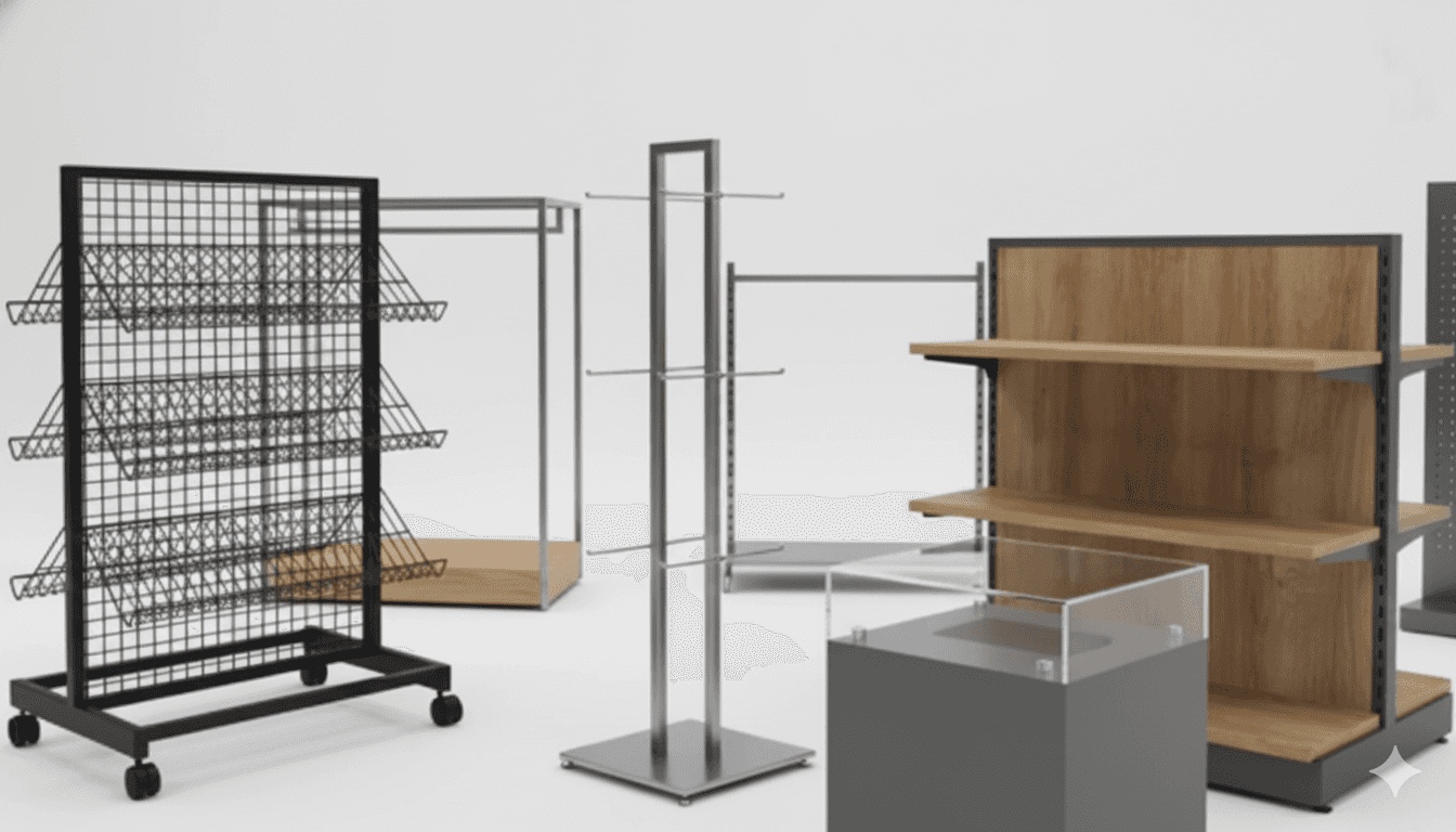 Comprehensive range of display solutions in wire, metal, plastic, MDF, and specialized accessories.